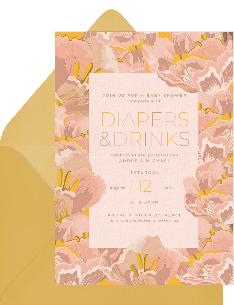 Abstract Peony Border Invitation