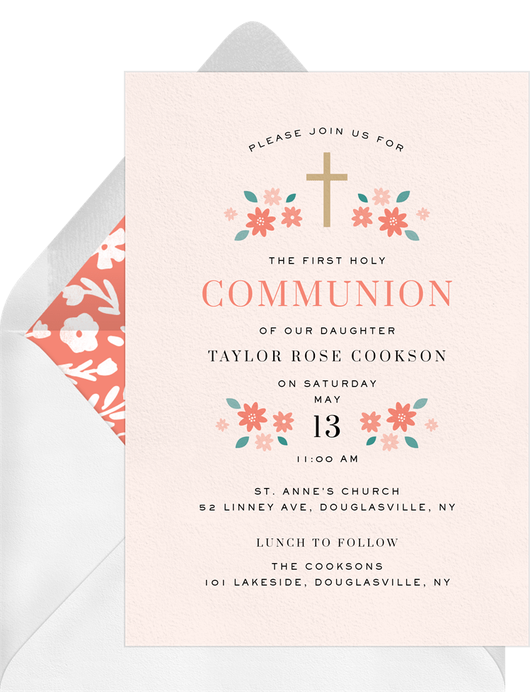Florals and Cross Invitation