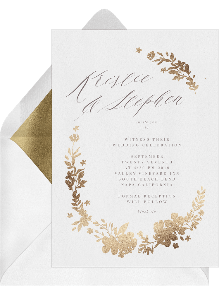 Golden Floral Wreath Invitation